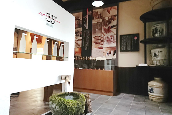 翠嶂館は北緯35度のテロワールを体験いただくためのショールームです。蔵限定のお酒や体験イベントを開催しています。直営店内では主要銘柄の試飲、ビデオによるお酒造り紹介などのサービスをご提供しています。